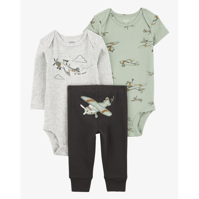 Комплект из 3 пред для мальчика (олив боди, сер полуком с самолетами, черные б), 1R035210, Carter’s 12M