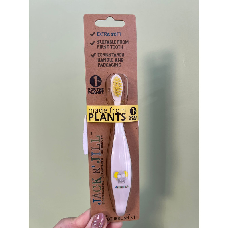 - Очень мягкая; - Биоразлагаемая; - Кукурузный крахмал; - Удобная для маленьких рук; - Подходит с первого зуба; - Не содержит бисфенола А и ПВХ; - Не тестируется на животных. Эта зубная щетка имеет ручку, изготовленную из 100% кукурузного крахмала (без ГМО) и мягкой нейлоновой (перерабатываемой) щетины . Это первый в своем роде в мире, предназначенный для детей.