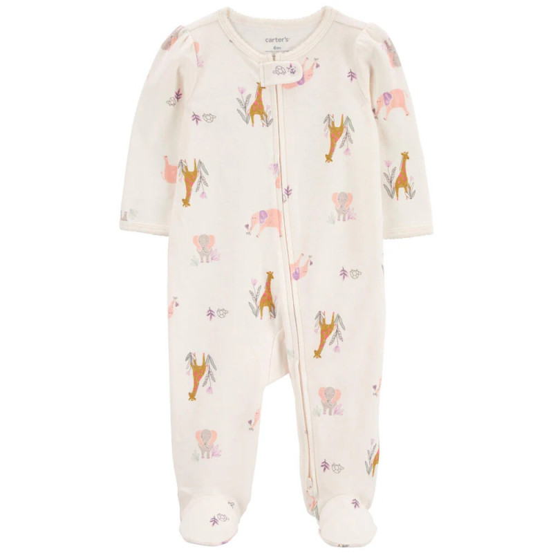 Комбинезон для девочки молочный с животными, 1R032410, Carter’s 6M