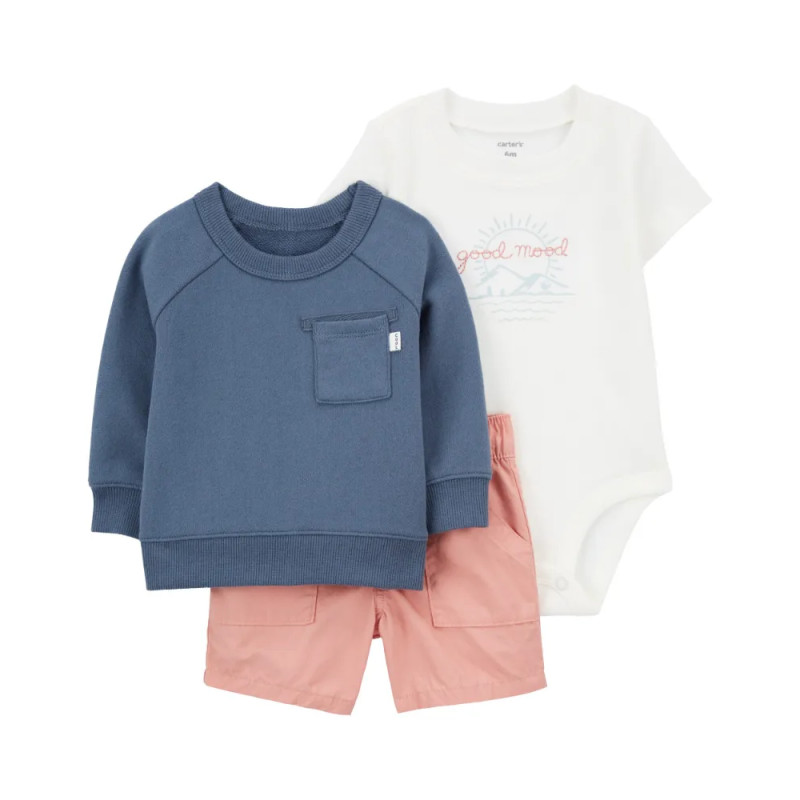 Комплект из трех предметов для мальчика (белое боди, синий джемпер, коралловые шорты) Carter’s 18M