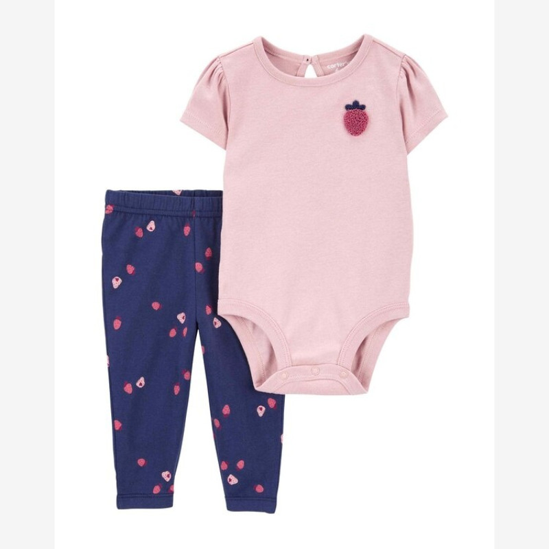 Комплект из 2 предм для девочки (розовое боди, темно-синие с клубничками брюки), 1R966210, Carter’s 9M