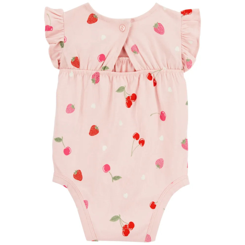 Комплект из двух предметов для девочки (розовое боди с клубничками, красные брюки) Carter’s 9M