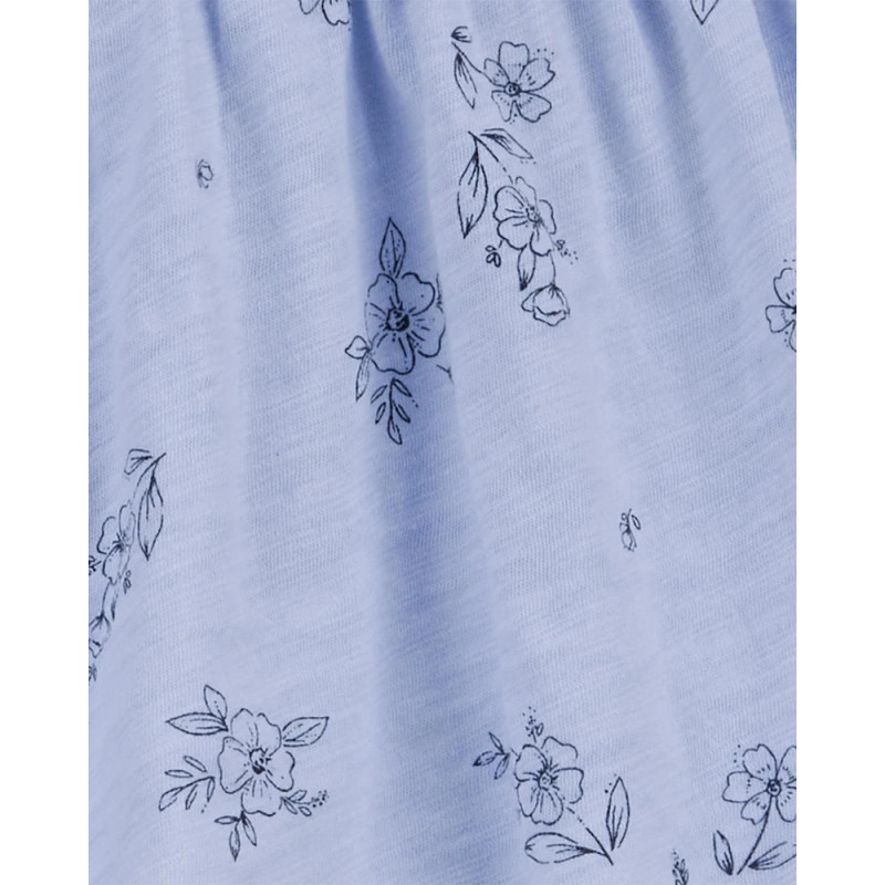 Комплект из трех предметов для девочки (голубые с цветочным принтом туника, брюки, повязка на голову 12M