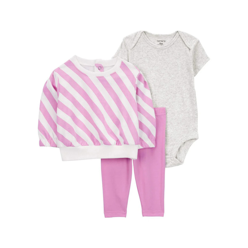Комплект из трех предметов для девочки (серое боди, джемпер в розовую полоску, розовые брюки) Carter 24M