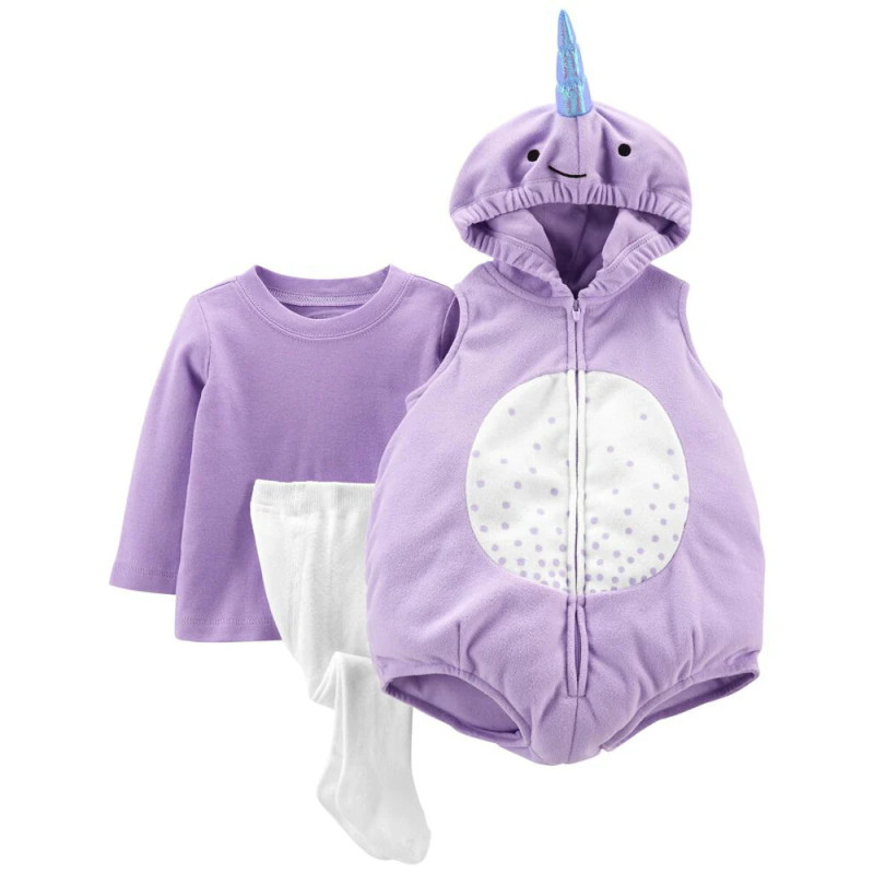 Комплект из трех предметов для девочки (сиреневые джемпер и полукомб, белые колготки) Carter’s 3M-6M