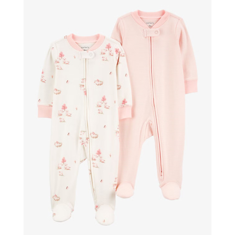 Набор из 2 комбинезонов для девочки (с овечками, в полоску), 1R040510, Carter’s 9M