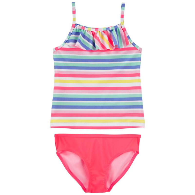 Комплект купальный из двух предметов для девочки (топ в полоску, розовые плавки) 7Т