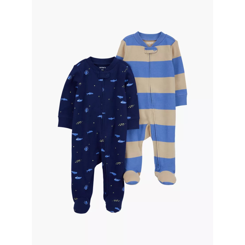 Набор из 2 комбинезонов для мальчика (полосатый, темно-синий с акулами) Carter’s 9M