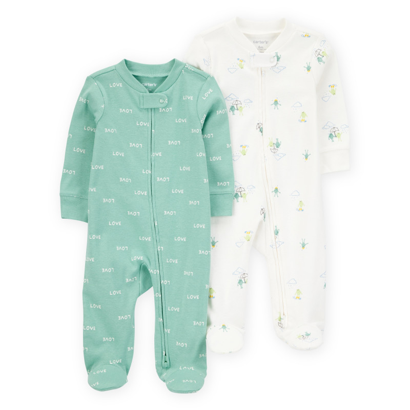 Набор из 2 комбинезонов для мальчика (зеленый с надписью, белый с лягушками) Carter’s 6M