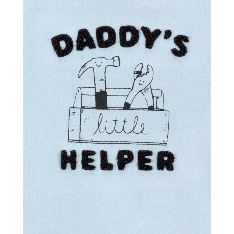 (1S469310) Комплект из двух предметов для мальчика (голубое боди с надписью, серые брюки с инструментами) (9M; 10013160/210525/5220086, ИНДИЯ )