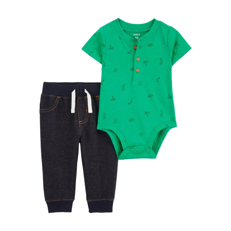 Комплект из двух предметов для мальчика (зеленое боди с рисунком, синие брюки) Carter’s 12M
