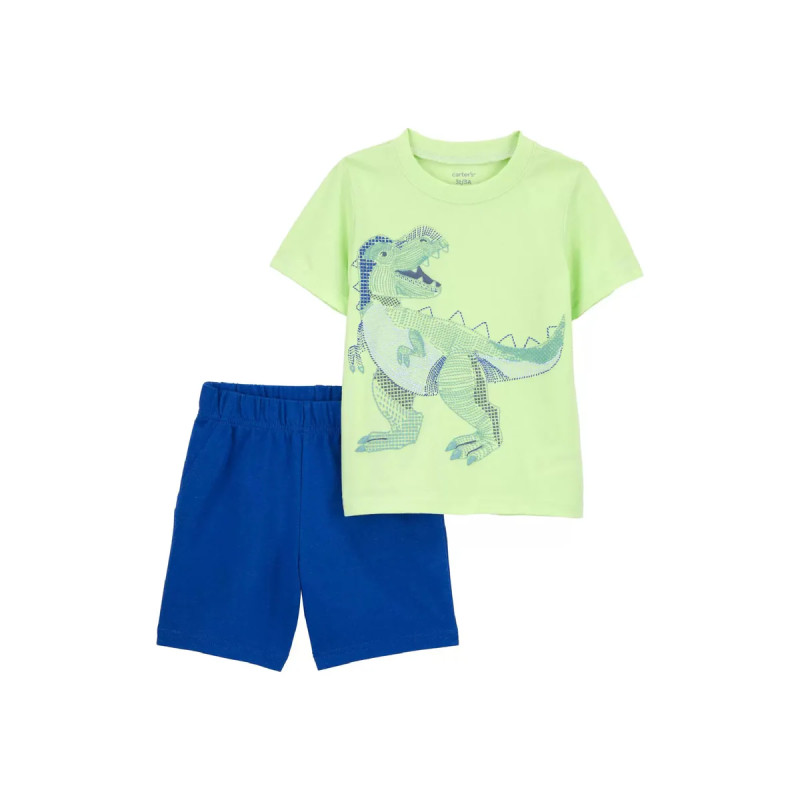 Комплект из двух предметов для мальчика (синие шорты, зеленая футболка с динозавром) Carter’s 3T