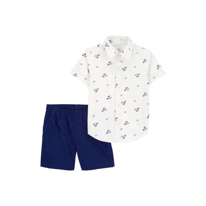 Комплект из двух предметов мальчика (белая рубашка с машинами, синие шорты) Carter’s 5T