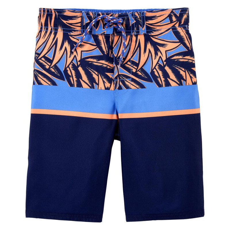 Шорты купальные для мальчика сине-голубые с листвой 6