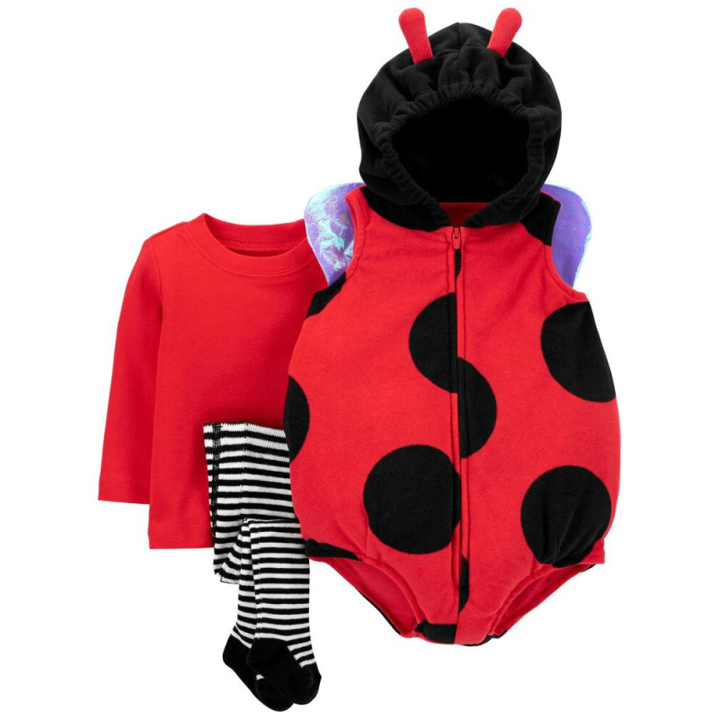 Комплект унисекс (красный джемпер, красный полукомбинезон, полосатые колготки) Carter’s 3M-6M