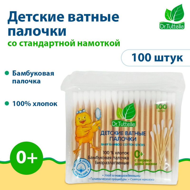 Детские ватные палочки Dr.Tuttelle 100шт