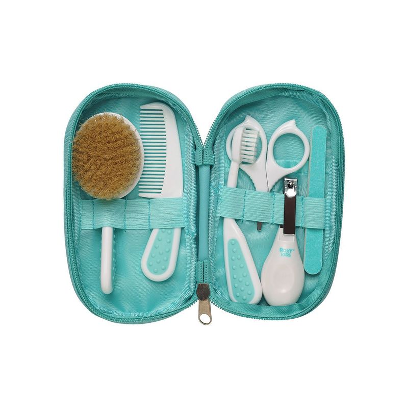 Гигиенический набор для малышей от Roxy Kids поможет вам ухаживать за грудничком с первых дней жизни. В футляре его можно компактно хранить и брать куда угодно. В наборе есть все необходимое для ухода за малышом: щетка для волос с натуральной щетиной, расческа, маникюрные ножницы, щипчики для ногтей, 5 пилочек, зубная щетка.