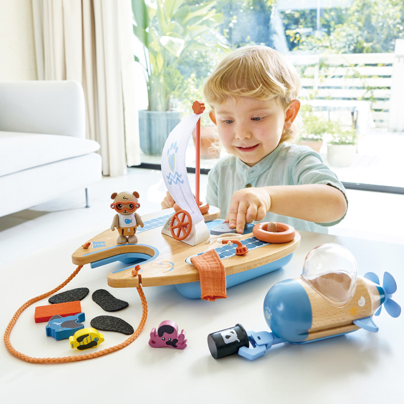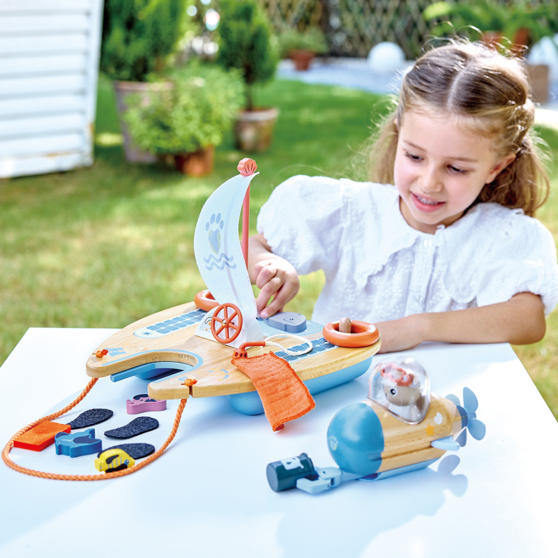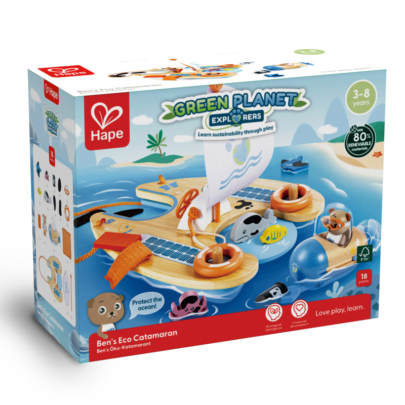 Игровой набор "Служба спасения" Эко-катамаран с фигуркой выдры, 18 пред., E3427_HP, Hape