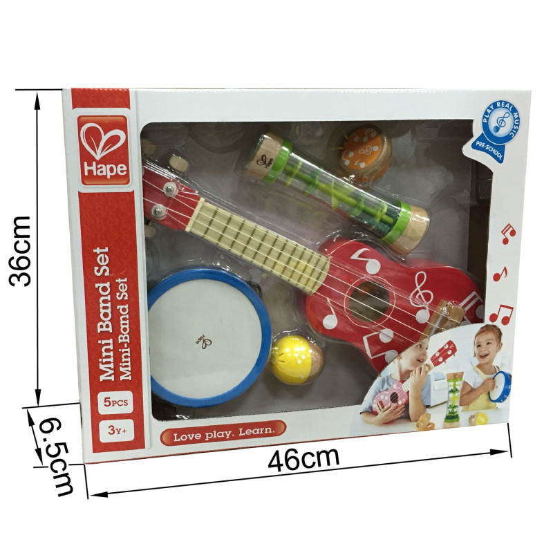 • Рекомендуется для мальчиков и девочек от 3 лет. • Набор состоит из 5 инструментов: гавайская гитара, бубен, трещотка, Бисерный дождь, погремушка • Яркий дизайн привлекает ребенка, вовлекает в игру. • Набор музыкальных игрушек Мини группа удобного детского размера. • Стимулирует развитие музыкального слуха, чувства ритма. • Игрушка поможет вашему малышу проводить время с пользой и интересом. • Ребенок тренируется запоминать и воспроизводить различные звуки. • Громкие чистые звуки игрушки соберут родных и близких на домашние концерты. • Игрушка изготовлена из качественного дерева и пластика. • Игрушка прошла контроль на безопасность и качество. Hape - один из крупнейших в мире производителей деревянных игрушек. Hape руководствуется философией, что будущее принадлежит нашим детям, и создает игрушки, которые вдохновляют на игру и изучение мира, в котором мы живем. Все продукты соответствуют строгим международным стандартам качества и безопасности. Hape - новое поколение игрушек.