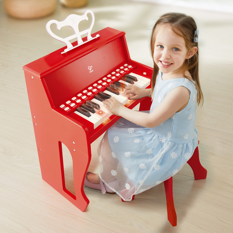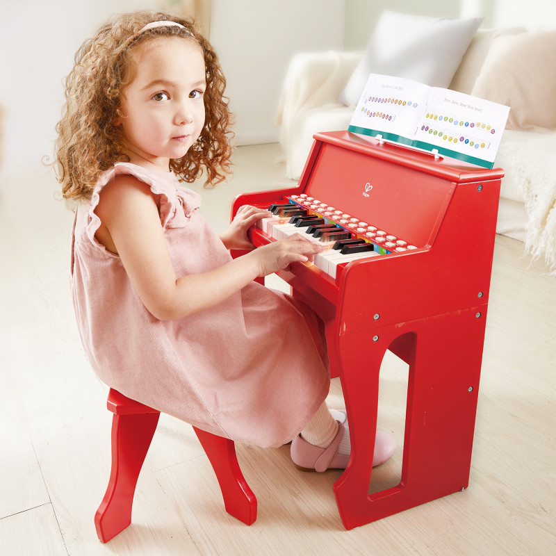 • Динамическое вертикальное электронное пианино с клавишами позволит вашим детям исследовать чудеса музыки и создавать свои собственные мини-симфонии. Гармонии эффективно поглощаются деревянной оболочкой, обеспечивая превосходную акустику и качественное знакомство с фортепиано. • Это фантастическое пианино для маленьких музыкантов оснащено съемной цветной полосой для нот, которая помещается за клавишами, направляя крошечные пальцы к цветным точкам в соответствии с инструкциями в нотной тетради, с ее помощью ваш ребенок может сыграть полную мелодию! • Для получения более сильного звука нажимайте на клавиши реалистичного размера сильнее, а для более легкого звука - мягче. • Пианино подготавливает детей к продвинутому музыкальному обучению и оттачивает моторику. • Подключите его с помощью прилагаемого кабеля или используйте батарейки, чтобы вы могли играть где угодно. • Изготовлено из безопасных материалов. Подходит для детей от 3 лет. Фантастическое пианино для Вашего маленького Моцарта дома! Дети получат удов
