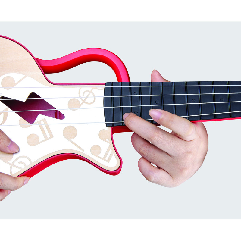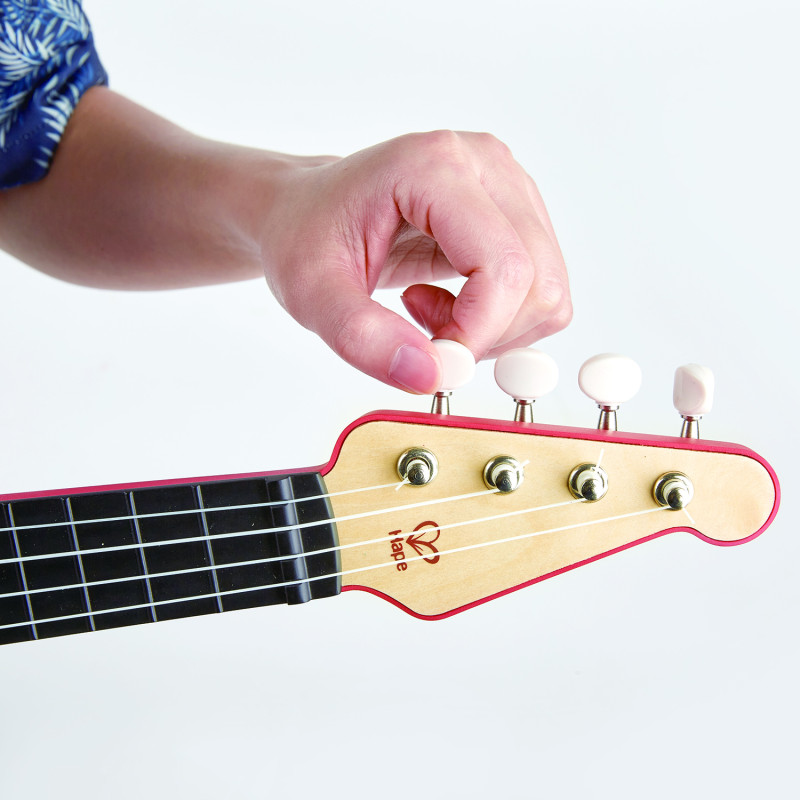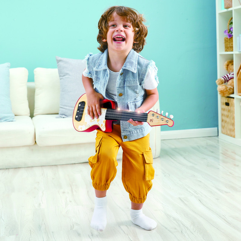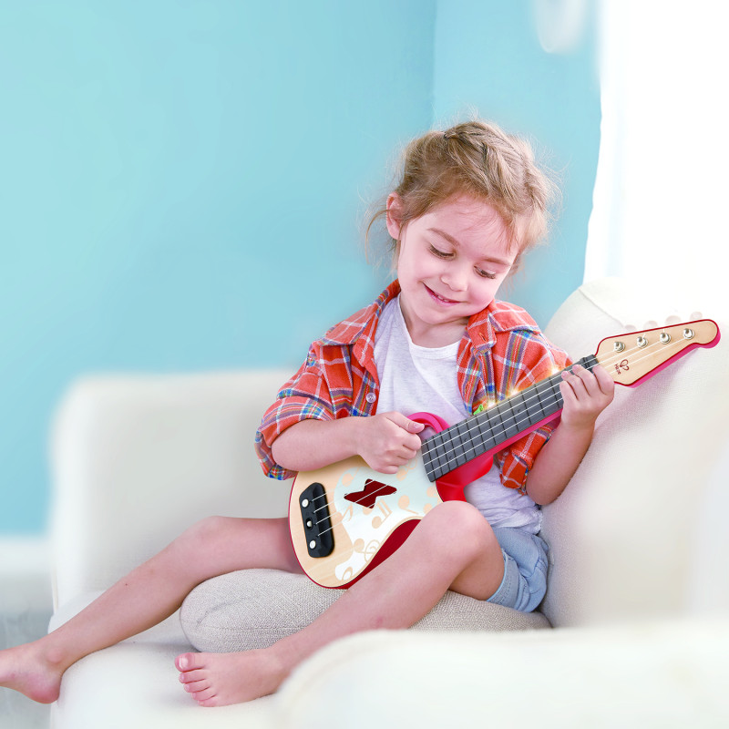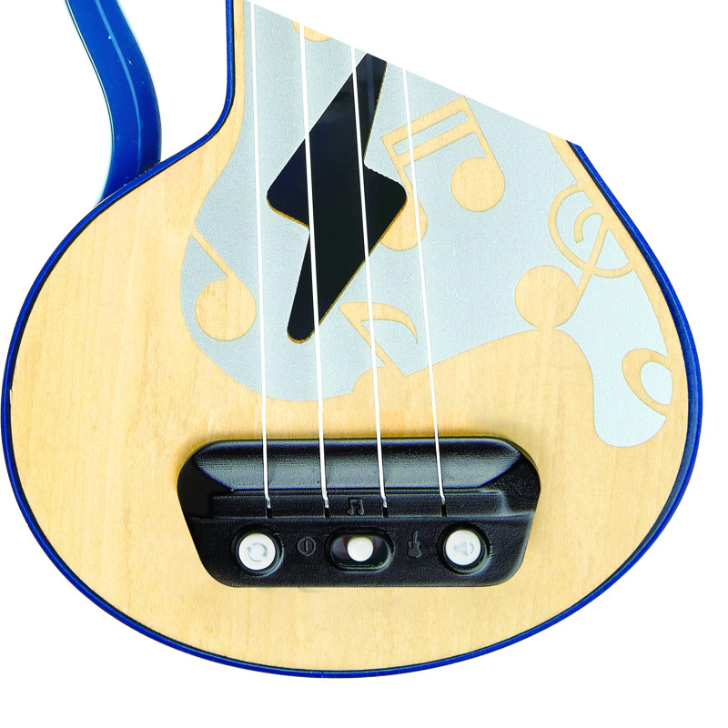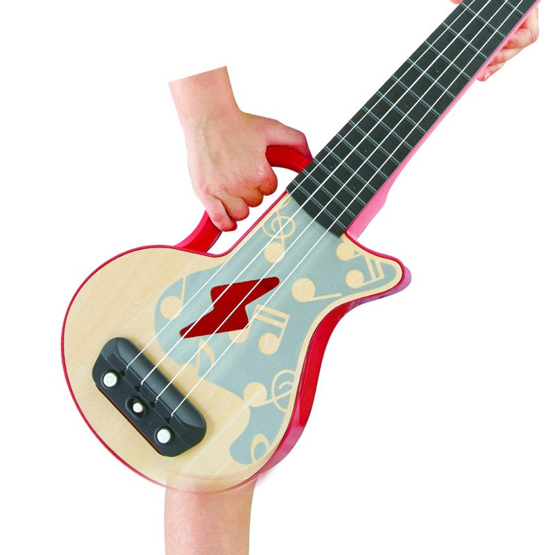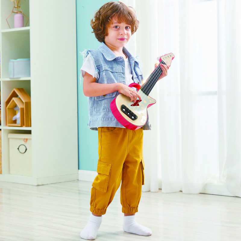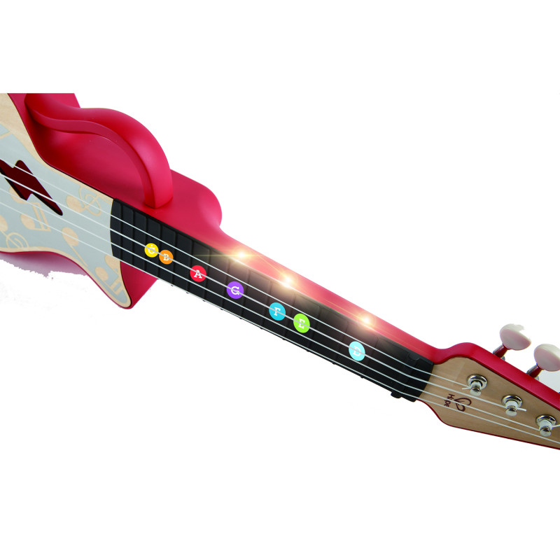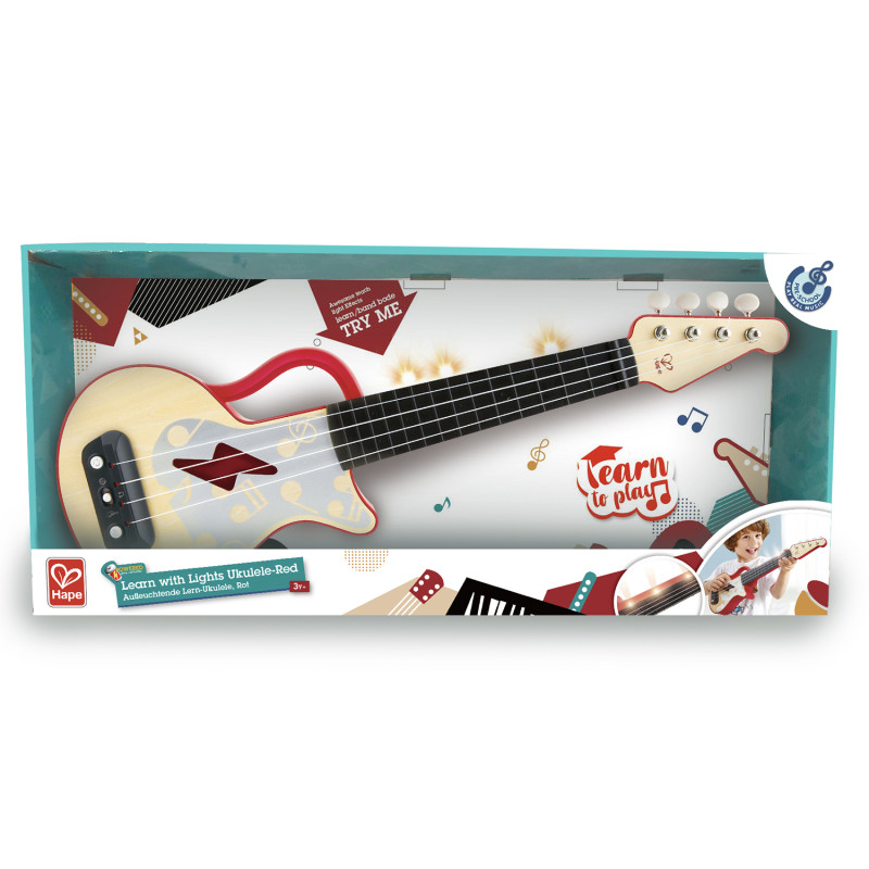 Струны на электрической гавайской гитаре загораются, когда на них нужно играть! Включая бегущую строку и сопроводительный буклет. Либо сыграйте шесть мелодий после огней, либо переключитесь в режим группы, чтобы увеличить скорость и переключить на нее сопутствующие инструменты. Укулеле с реалистичным звуком можно легко транспортировать благодаря удобной рукоятке. У него настоящие струны, которые действительно можно настроить, и они поставляются вместе с запасной струной. В комплект поставки входят три батарейки ААА 1,5 В. Для детей от 3 лет.