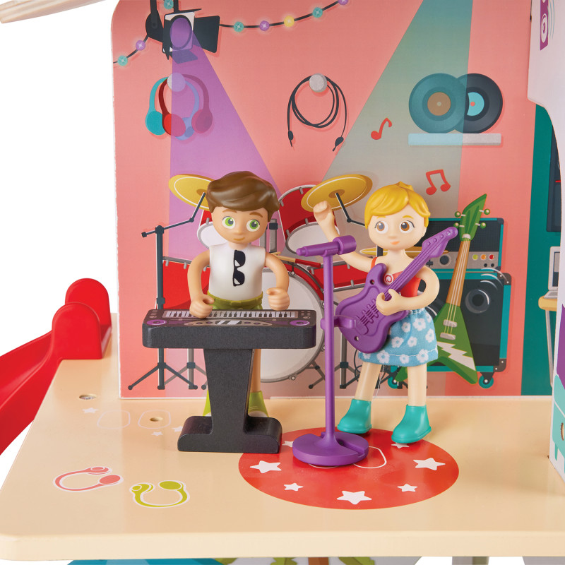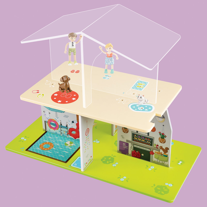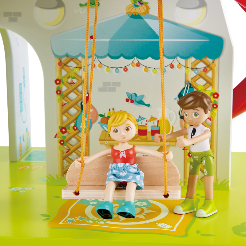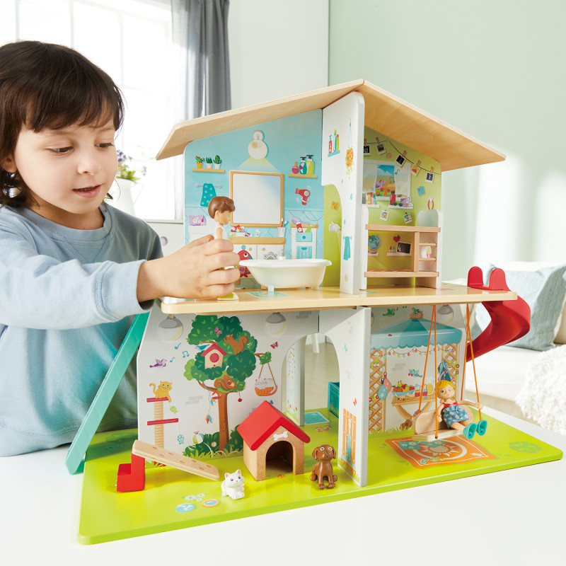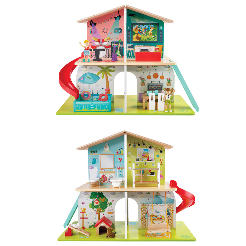 • Этот игровой домик - дом детской мечты, состоящий из двух этажей, восьми комнат и двух мероприятий на свежем воздухе. Открытый дизайн позволяет нескольким детям мгновенно получить доступ ко всем восьми комнатам! • Наполните просторный дом девятью захватывающими повседневными домашними звуками, включая раковину, фен, смыв унитаза, кукареканье петуха и многое другое. Запустите каждый звук, просто расположив фигуры так, чтобы их ступни покрывали один из светодиодных фонарей на полу. • Пусть время вашего ребенка оживет! Обилие реальной мебели и аксессуаров, в том числе: пианино, гитара, микрофон, диван, стол, стулья, посуда и чашки, шашлычки для рыбы, унитаз, двухъярусная кровать, горка, качели, собака и кошка, а также фигурки девочек и мальчиков. • С таким большим игровым потенциалом и реалистичными звуковыми эффектами под одной крышей - детям никогда не хватит историй, чтобы рассказать! • Этот очаровательный игровой домик поможет развить у малышей творческие навыки ролевой игры и социальные навыки. • Изготовл