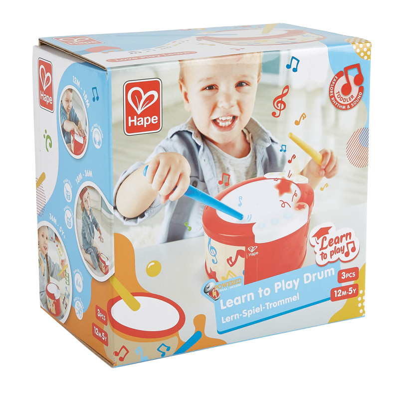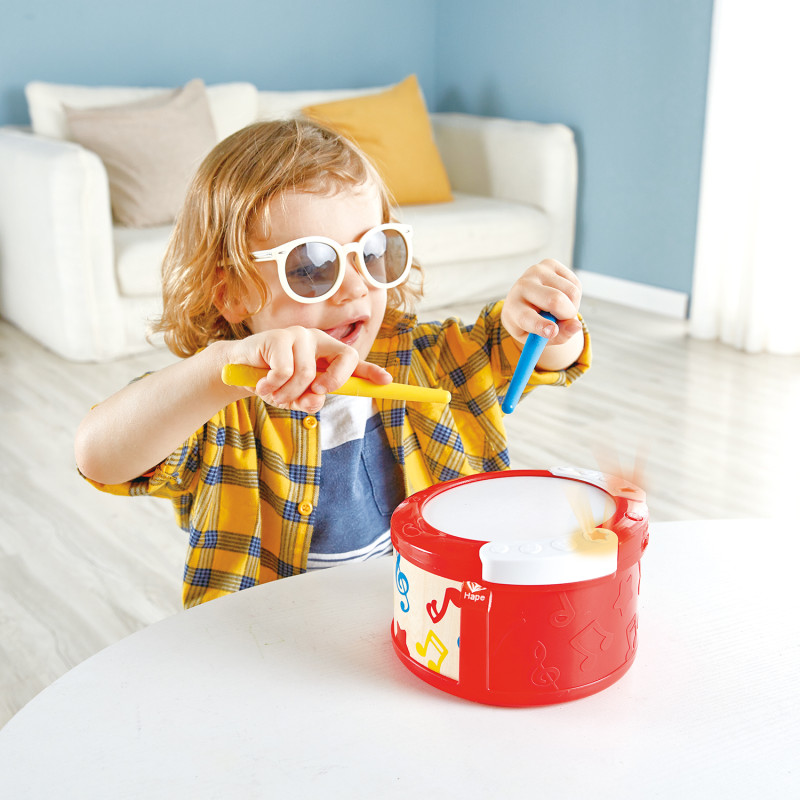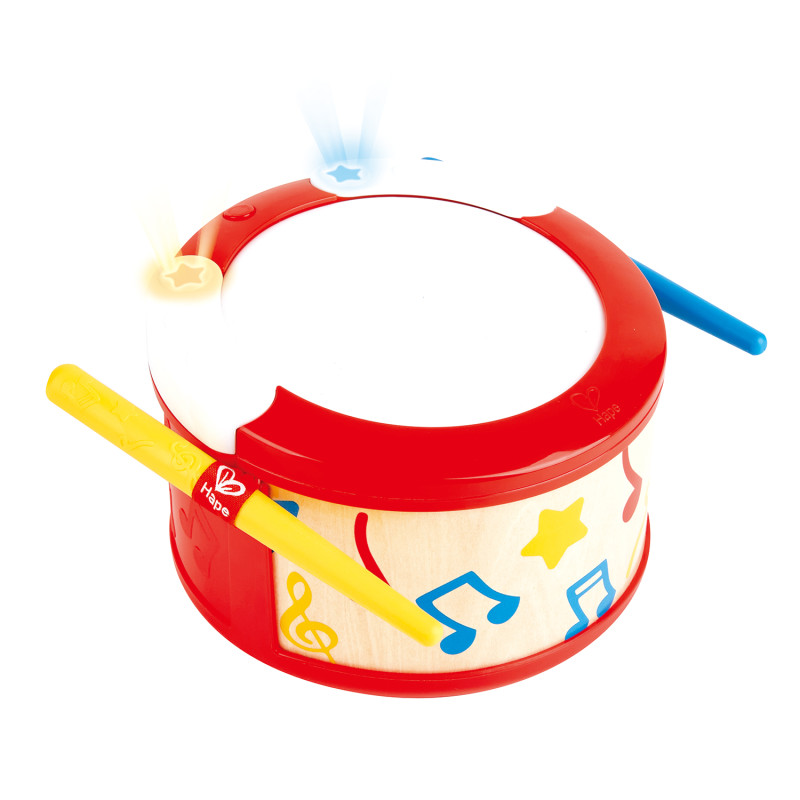 • Рекомендуется для девочек и мальчиков. • Возрастные рекомендации: от 1 года. Отличительные особенности: • 2 режима игры на барабане. Ударный инструмент имеет режимы для обучения ритму и режим изучения мелодий, чтобы помочь вашему ребенку практиковать ранние музыкальные навыки. • В комплект входят две барабанные палочки, которые помогают вашим детям развивать координацию рук, пока они играют в режиме обучения ритму. Барабан имеет крепления для палочек, чтобы предотвратить их потерю. • Переключитесь в режим изучения мелодий и играйте под музыку, выбирая из пяти разных песен. Мигающие огни будут служить ориентиром для юного музыканта. • Красочная игрушечная барабанная установка поможет малышу развить логическое мышление, мелкую моторику и терпение. • Игрушка проста в использовании: просто ударьте по барабану палочками или руками, чтобы создать ритм. Даже в выключенном состоянии вы можете постучать по силиконовой поверхности, чтобы воспроизвести классический звук барабана. Hape - один из крупнейших в мире произ