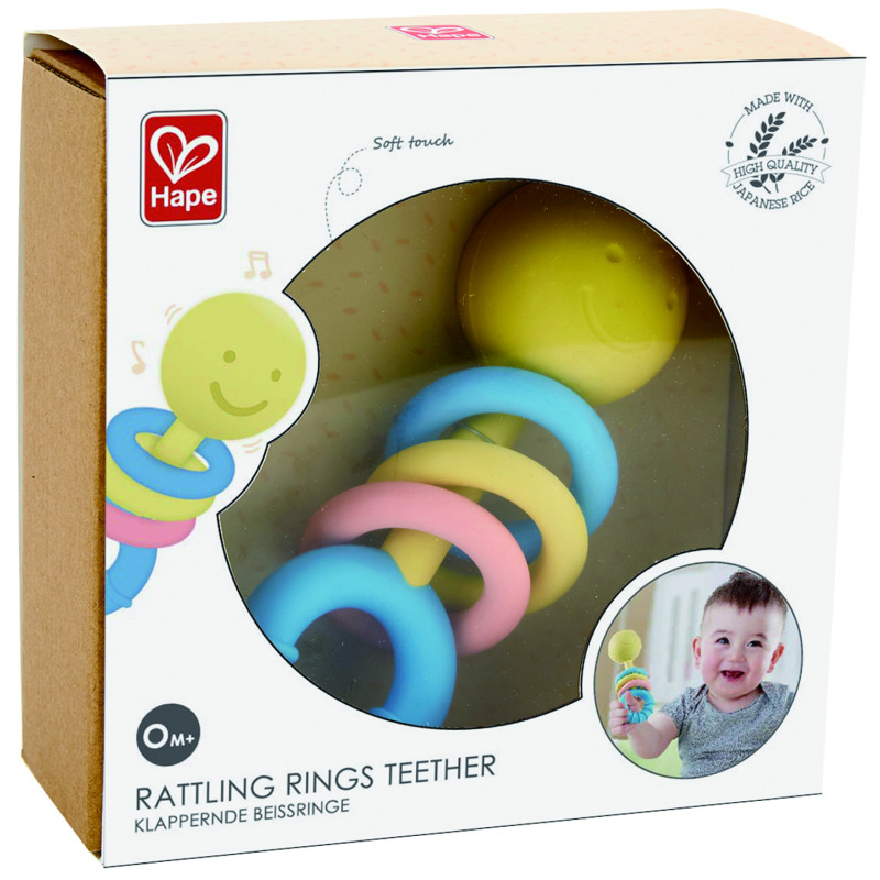 • 100% БЕЗОПАСНО ДЛЯ ЖЕВАНИЯ: этот детский прорезыватель для зубов изготовлен из безопасного материала на основе риса без запаха, синтезированного с использованием японского риса. • ОБЛЕГЧЕНИЕ ДИСКОМФОРТА: Разнофактурные ребра для прорезывания зубов, изготовленные из мягкого термопластичного эластомера, сводят к минимуму дискомфорт в процессе прорезывания зубов вашего ребенка. • ЛЕГКО ЗАХВАТИТЬ И ДЕРЖАТЬ: Игрушка-прорезыватель Hape's подходит для всех детей, у которых прорезываются зубы, их легко захватывать и удобно держать. • СТИМУЛИРУЕТ ОСТРОТУ ЗРЕНИЯ: Мягкие цвета и прикосновение стимулируют внутреннего искателя приключений, поощряя ранние тактильные исследования. • БЕЗОПАСНО ДЛЯ ИГРЫ: это кольцо-прорезыватель обладает свойствами, безопасными для детей, что дает родителям меньше поводов для беспокойства во время трудной фазы прорезывания зубов. Описание продукта: Кольцо HapeTeether – это отличный способ порадоваться за прорезывание первых зубов и уменьшить дискомфорт. Выполнены в трех мягких цветах,
