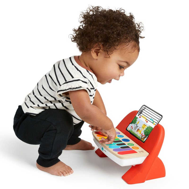 Музыкальная игрушка для малышей "Пианино" знакомит малышей с классическими мелодиями на этой деревянной клавиатуре с технологией Magic Touch™. С тремя музыкальными карточками с цветовой кодировкой малыши могут воспроизводить популярные мелодии в музыкальном звучании по своему выбору, следуя точкам на карточках. Нажатие синей кнопки активирует установленные мелодии, или дети могут свободно играть с различными звуками клавиш пианино, чтобы обнаружить причину и следствие, создавая свои собственные специальные мелодии. • Малыши могут экспериментировать с музыкальным сочинением на этом деревянном игрушечном пианино. • Клавиатура с технологией Magic Touch™ воспроизводит 6 популярных мелодий. • Включает 2 инструмента (фортепиано, ксилофон) и 2 голоса животных (собака, кошка). • Представляет причину и следствие. • Возраст 6-36 месяцев.
