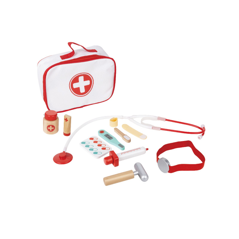 Благодаря детскому игровому набору "Доктор по вызову" ребенок может оказывать первую медицинскую помощь своим игрушкам или родным и друзьям. Игра в увлекательной форме поможет малышам преодолеть страх перед посещением кабинета врача, а также развивает мелкую моторику, координацию движений, фантазию, логику, социально-коммуникативные навыки общения. Все элементы игры изготовлены из высококачественного и безопасного для ребенка дерева и пластика. Набор рекомендован для детей от 3 лет.