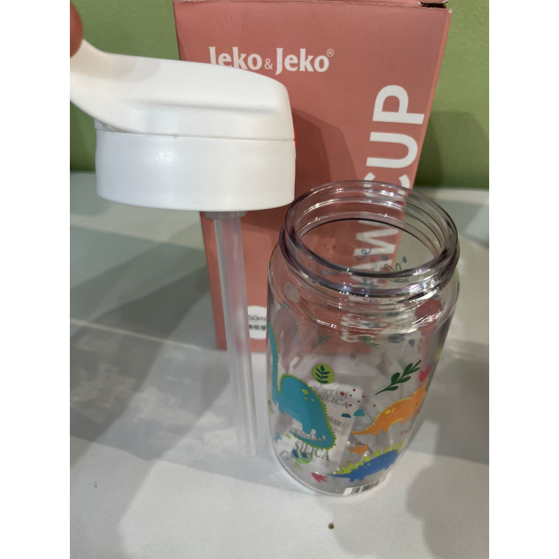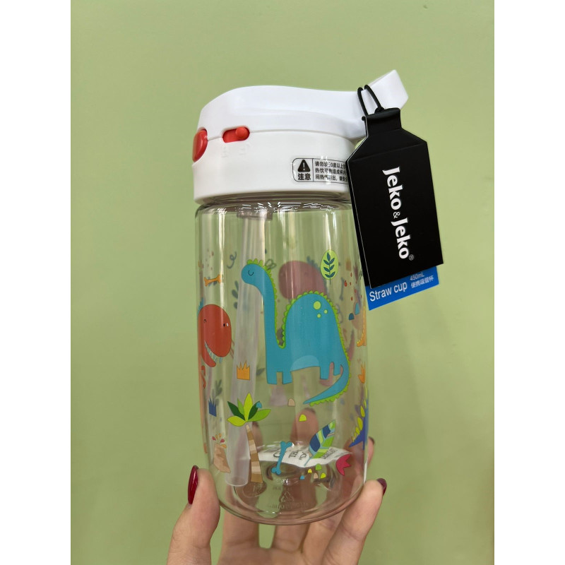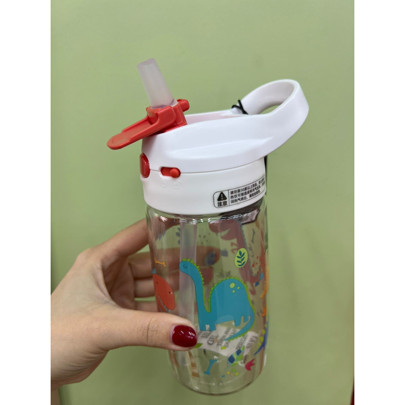 Пластиковая бутылка с трубочкой 450 мл 1+ Zoom Динозавр оранжевый