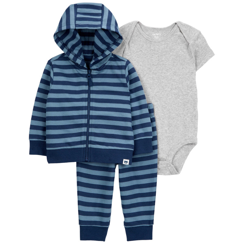 Комплект из трех предметов для мальчика (серое боди, синие в полоску кардиган и брюки) Carter's