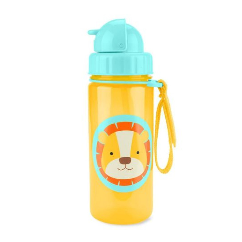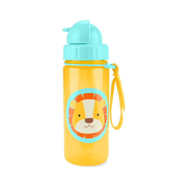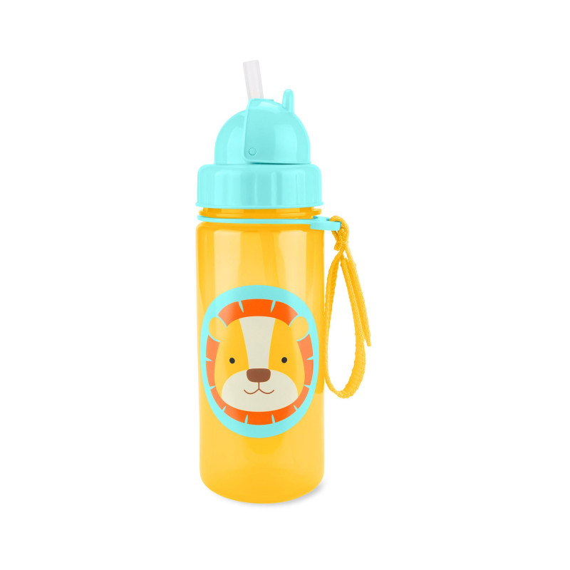 Яркий поильник с трубочкой Skiphop подходит для детей от 12 месяцев, силиконовая трубочка остается под крышкой при закрывании, к бутылочке крепится ремешок, который можно закрепить к сумке или коляске, поильник изготовлен из качественых и безопасных материалов.