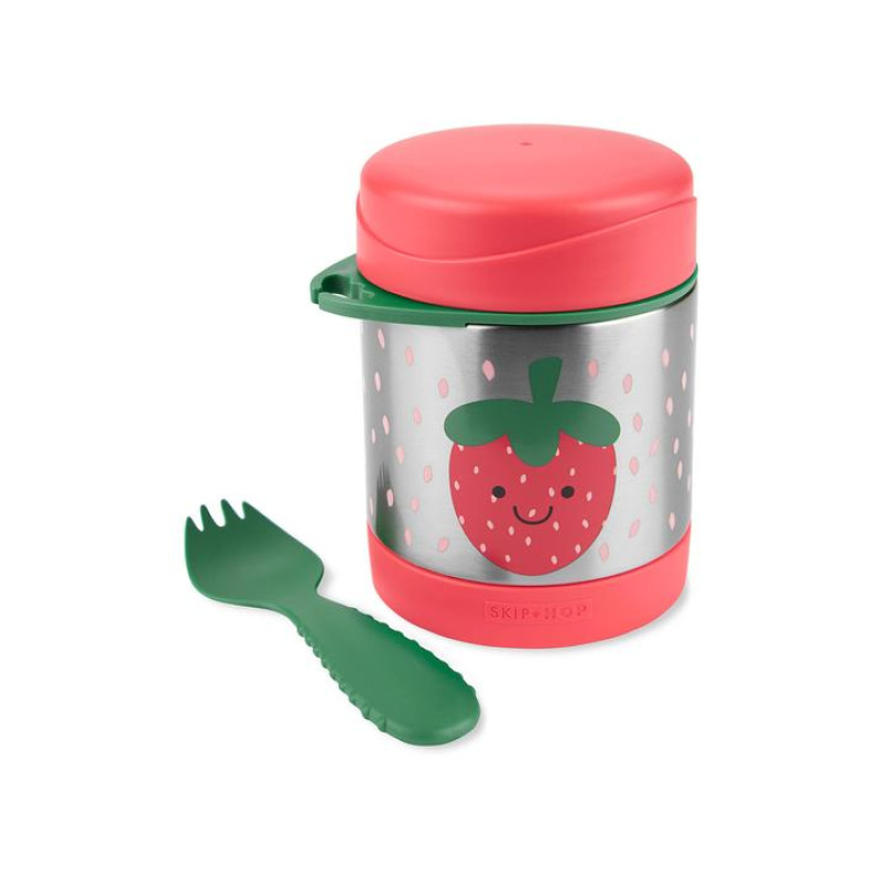 Термос с небольшой вилочкой имеет красочное оформление. Под плотной крышкой находится вместительная емкость для обедов малыша. Термос заботливо сохранит горячее или холодное блюдо в течение нескольких часов. Особенности: - Благодаря легкому весу и небольшому размеру термос с вилочкой можно легко прихватить с собой, если Вы планируете путешествовать вместе с ребенком. - Изделие красочно оформлено изображением, поднимающего ребенку настроение. - Термос выполнен из нержавеющей стали, если его наполнить горячей пищей – она не остынет в течение 7 часов, а если холодным напитком - он не согреется в течение 5 часов. - Благодаря плотной герметичной крышке оранжевого цвета содержимое термоса не прольется. - Под крышкой расположено резиновое кольцо, на которое фиксируется безопасная вилочка в комплекте. - Вилочка выполнена из высококачественного материала, не вызывает у деток аллергии.