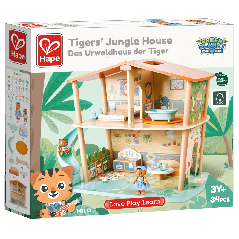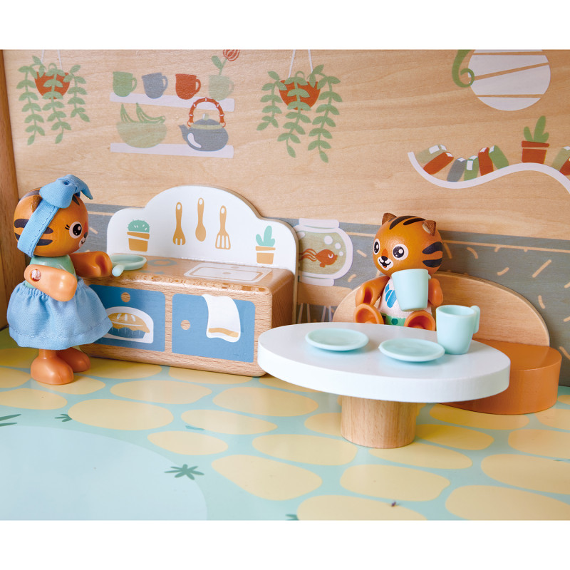 Кукольный "Мини-дом" в джунглях, семья тигров с фигурками и мебелью в наборе E3412_HP Hape