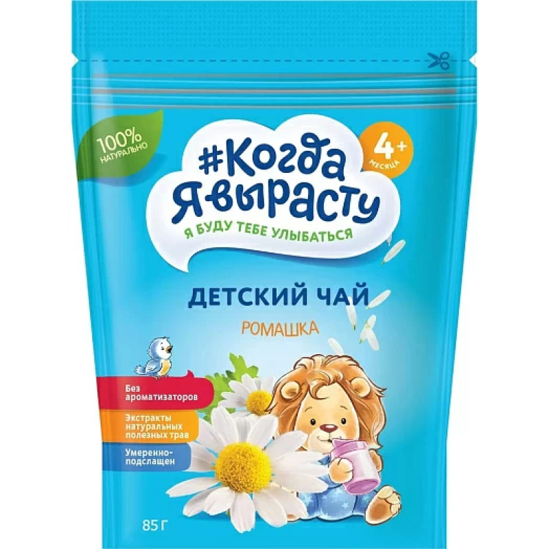 Когда Я вырасту Чай детский гранулированный 85 г полезный напиток для детей старше 4 месяцев. Инстантный (быстрорастворимый) чай великолепно растворяется в воде. Удобная и герметичная упаковка (Doypack) позволяет сохранять свойства напитка на протяжении всего периода потребления. Чай производится на новейшем современном заводе с соблюдением высоких требований к качеству детского питания. Рекомендации по приготовлению: смешайте 100 мл теплой прокипяченной воды с 1 чайной ложкой (4г) чая, тщательно перемешайте. Не добавляете сахар. Остудите перед употреблением. Для детей старше 5-и месяцев рекомендуемое количество 150-200 мл чая в день. Всегда готовьте свежую порцию чая. Перед введением в рацион детского чая проконсультируйтесь у врача.