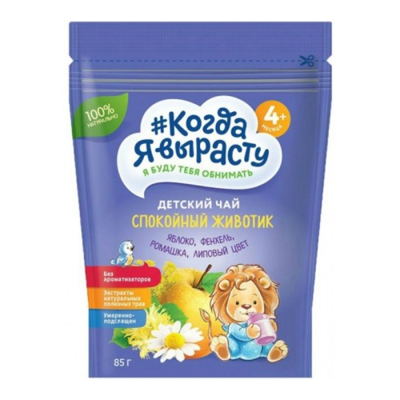 Когда Я вырасту Чай детский гранулированный Спокойной ночи с 4 мес. 85 г с яблоком, липовым цветом и мелиссой это полезный детский напиток для детей старше 4 месяцев. Инстантный (быстрорастворимый) чай великолепно растворяется в воде, обладает легким ароматом липы, яблока, мелиссы и умеренной сладостью. Липовый цвет и мелисса успокаивают, снижают чрезмерное вздутие животика способствуют улучшению обмена веществ. Удобная и герметичная упаковка (Doypack) позволяет сохранять свойства напитка на протяжении всего периода потребления. Чай производится на новейшем современном заводе с соблюдением высоких требований к качеству детского питания. Рекомендации по приготовлению: смешайте 100 мл теплой прокипяченной воды с 1 чайной ложкой (4г) чая, тщательно перемешайте. Не добавляете сахар. Остудите перед употреблением. Для детей старше 5-и месяцев рекомендуемое количество 150-200 мл чая в день. Всегда готовьте свежую порцию чая. Перед введением в рацион детского чая проконсультируйтесь у врача.
