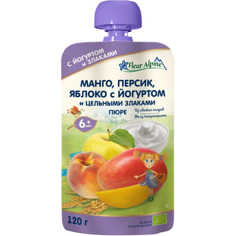 Пюре пауч Органик 6мес, 120г/6 Fleur Alpine Манго-персик-ябл с йогуртом
