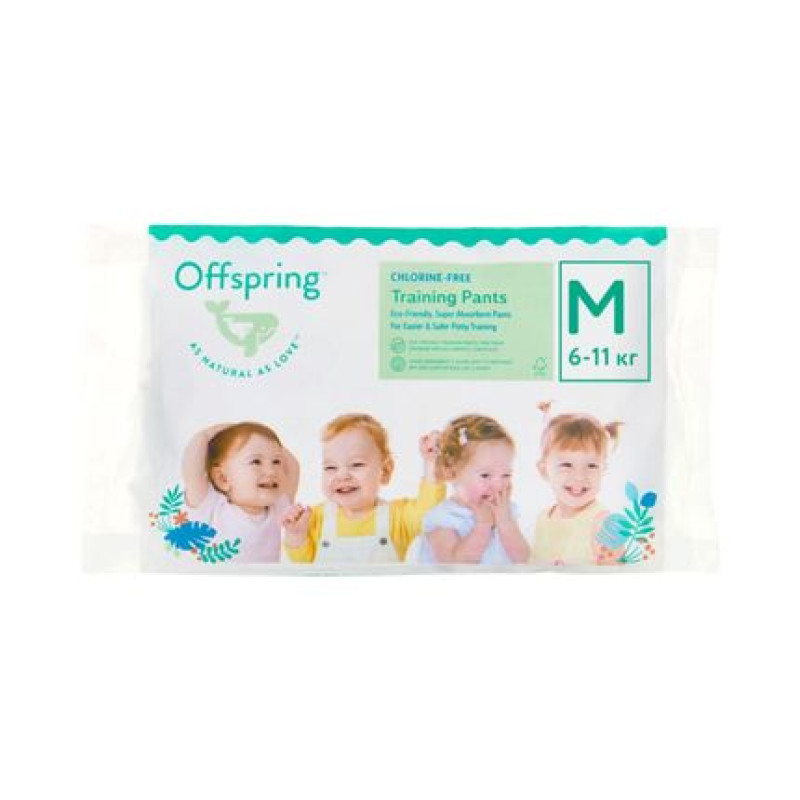 Offspring – первые подгузники-трусики, которые сочетают в себе безопасный состав и эко-подход скандинавских подгузников, и мягкость и комфорт азиатских.Стильные и безопасные подгузники-трусики Offspring созданы в Австралии в ответ на реальные желания современных мам и пап — быть уверенными в безопасности и удобстве их малышей. Offspring производятся по японской технологии с использованием лучшего японского суперабсорбента по стандартам качества ISO 9001 & ISO 1400, поэтому отлично впитывают и не пропускают влагу. Offspring - безопасные подгузники-трусики, потому что не содержат хлора, парабенов, латекса, фталатов, тяжелых металлов, отдушек и лосьонов. В них нет индикатора наполняемости, потому что такие индикаторы всегда содержат краски с сомнительным составом. Супердышащие внутренний и внешний слой оберегают кожу малышей от раздражений и опрелости, а закругленные застежки, высокий эластичный поясок и двойные прилегающие барьерчики не натирают ее. В основе материалов впитывающего слоя - целлюлоза.