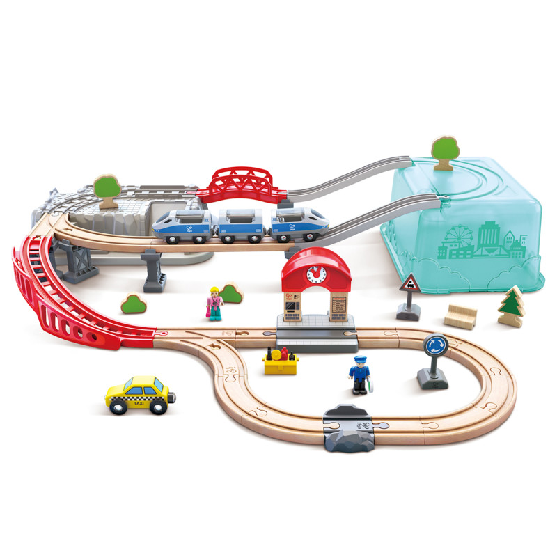 Совершите увлекательное путешествие на поезде по взлетам и падениям города! В этот удобный для путешествий набор Bucket входят такие аксессуары, как деревья, знаки и автомобили. Этот замечательный набор поставляется в коробке для хранения, которая фактически является частью декораций!